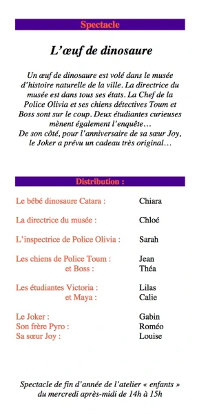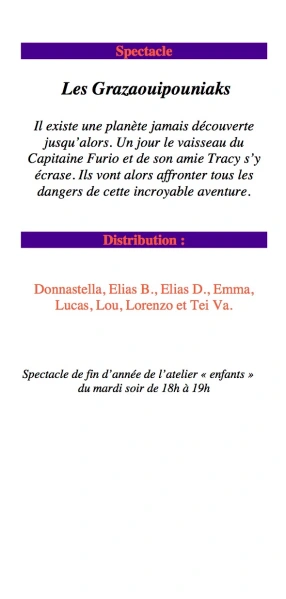 écrit et mis en scène par Clara Ann Marchetti d’après les idées des enfants