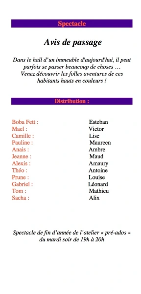 » Avis de Passage «